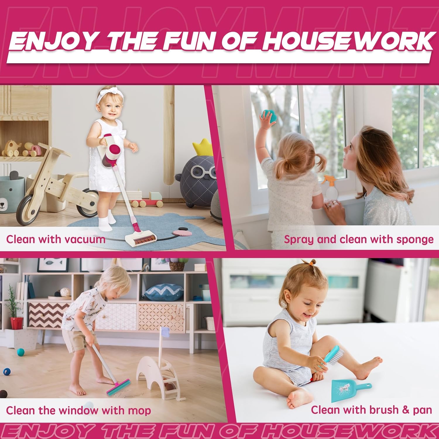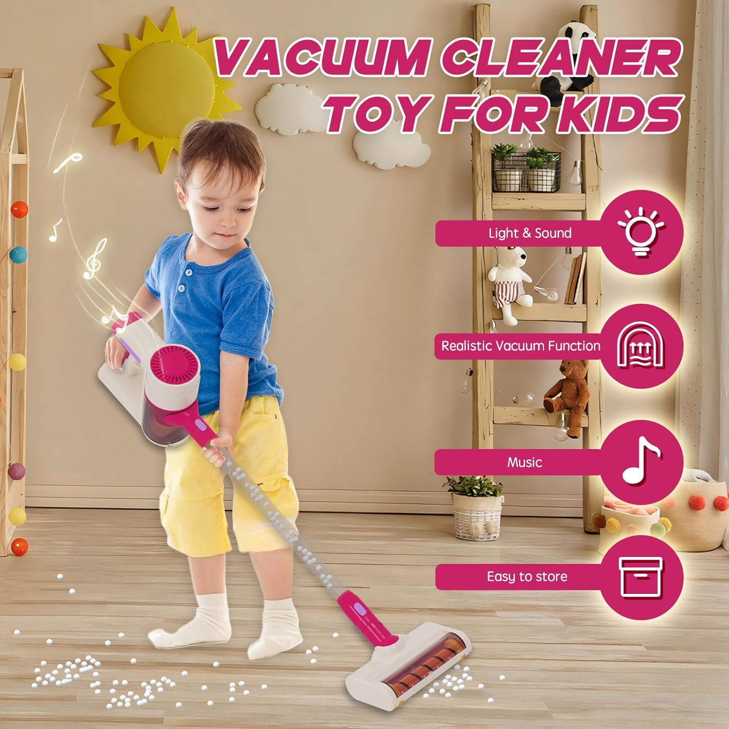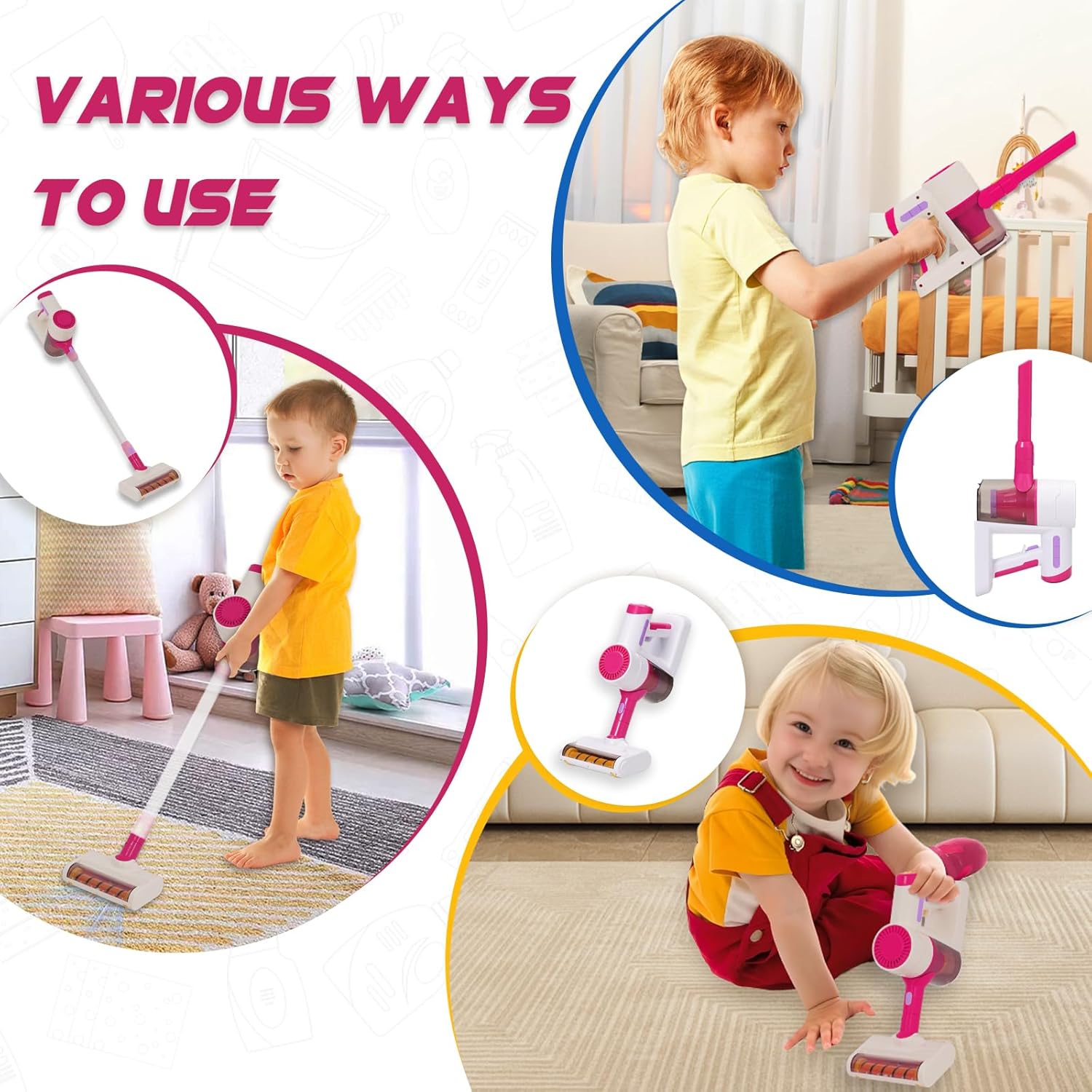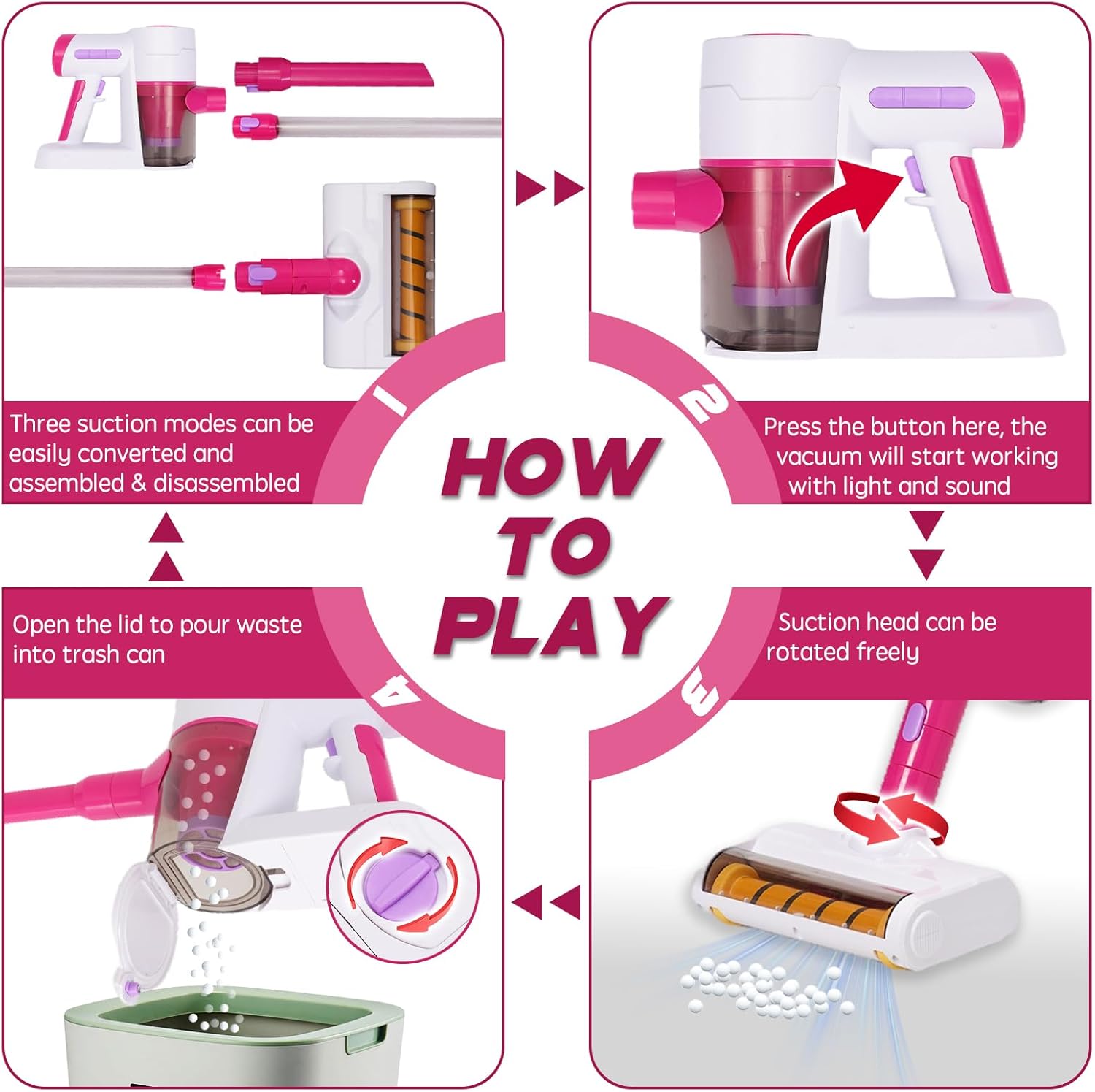 Ovaj realistični dečiji usisivač ima pravu funkciju usisavanja koja lako skuplja sitne mrvice i laganu prašinu. Deca mogu da imitiraju roditelje, uče o čistoći i razvijaju osećaj odgovornosti kroz zabavnu igru.